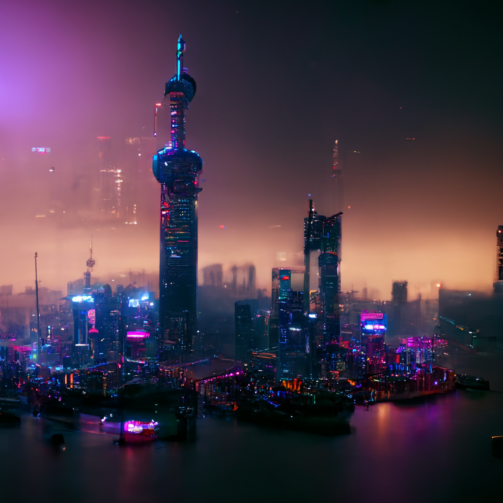 Shanghai skyline at night, ultra high detail, octane render, Cyberpunk